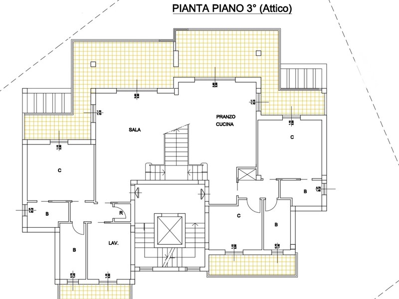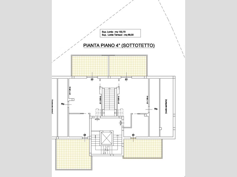 L'attico prevede due livelli, con la parte residenziale disposta su tutto il terzo piano del fabbricato e l'intera mansarda sotto tetto con altezze comode (altezza minima 1,2 mt) per ricreare una spazio adattao a diversi usi.
