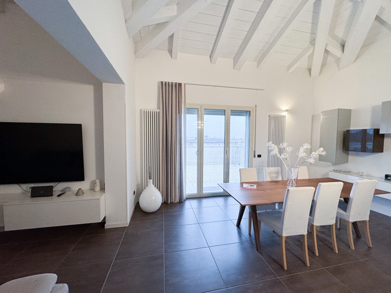 A San Vito, in zona super servita a 1 chilometro da Santarcangelo, proponiamo prestigioso attico libero su 4 lati e finemente arredato, disposto al 4 e ultimo piano con ascensore di una moderna palazzina del 2011.