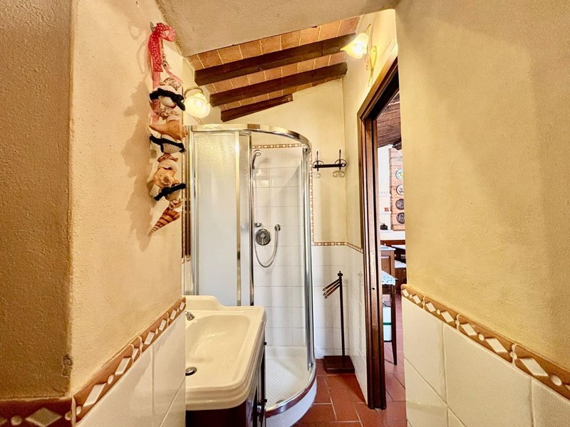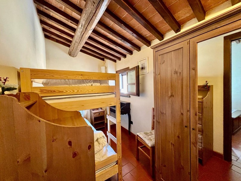 L'appartamento si compone da un delizioso soggiorno con camino e caratteristico angolo cottura, camera matrimoniale, cameretta e bagno con finestra. La proprietà è stata finemente ristrutturata da pochissimi anni mantenendo inalterate le tipiche caratteristiche toscane, travi, travicelli e pavimento in cotto.