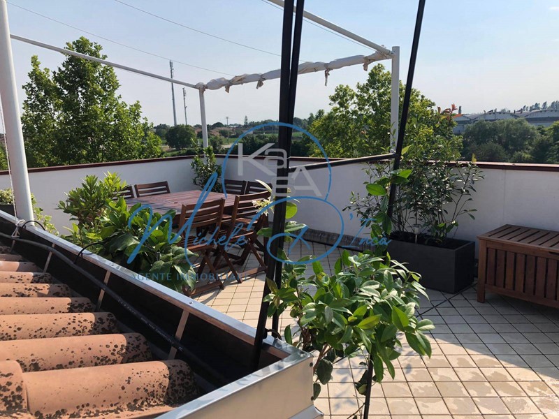 Immobiliare KasA propone in vendita in zona residenziale lontano dal traffico e su recente palazzina, appartamento su 2 livelli oggetto di migliorie "tecniche" nell'anno 2024. Appartamento che si presenta molto luminoso e immediatamente abitabile. Ingresso su ampio soggiorno con scala a vista e primo terrazzo abitabile, cucina separata, bagno finestrato e prima camera matrimoniale. Le scale ci conducono al piano superiore dove troviamo un secondo bagno con ulteriori attacchi per chi vlesse installare una doccia o una vasca, camera da letto di 16 mq accatastata ad uso guardaroba con armadiatura a muro molto capiente. Terrazzo panoramico di quasi 50 mq. al piano interrato garage doppio in lunghezza di 31 mq. Caldaia sostituita un anno fa come il climatizzatore al piano superiore. zanzariere in tutte le finestre. Disponibilità per il rilascio da concordare con la proprietà.