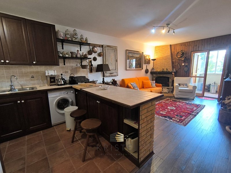 L'appartamento è composto da un ampio e comodo ingresso, uno spazioso living con cucina a vista funzionale / zona pranzo / salotto con area tv ed un gradevole camino per trascorrere lieti momenti di socializzazione
