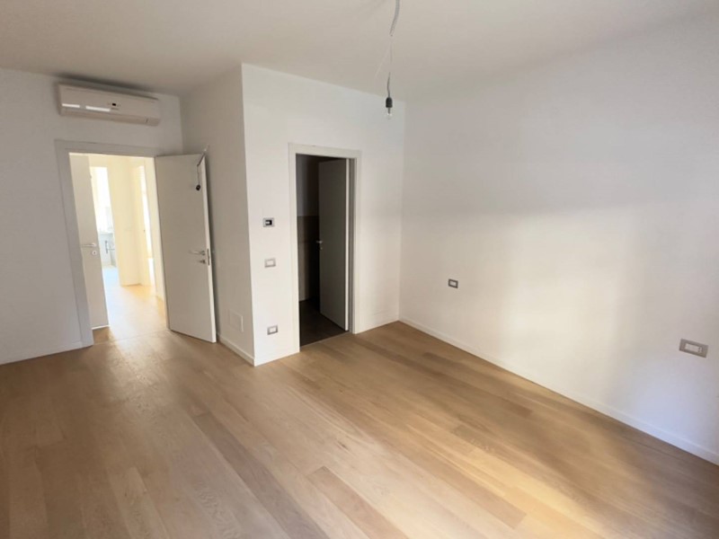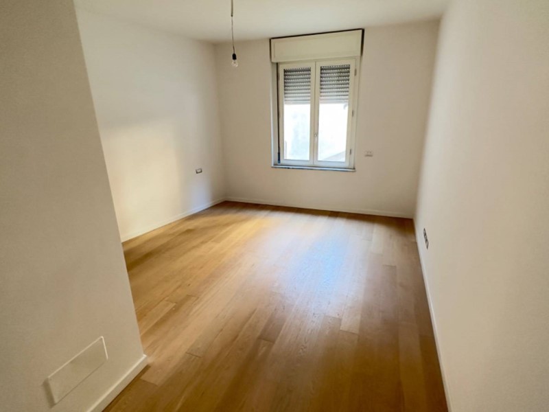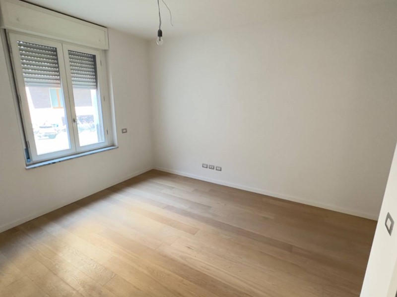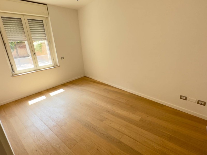 Lappartamento di 114 mq è posto al piano rialzato servito da ascensore e si sviluppa su un unico livello. La distribuzione interna prevede un grande soggiorno, cucina abitabile separata dal soggiorno con due porte scorrevoli, disimpegno, camera doppia, camera matrimoniale con bagno privato con doccia, secondo bagno con vasca e ripostiglio. Dal soggiorno si accede al balcone, lato cortile interno, offrendo tranquillità e luminosità. Dallaltro lato, cucina e camera matrimoniale affacciano sulla piazzetta interna, riservata e silenziosa. Le due camere, posizionate allestremità delledificio, non confinano con altri appartamenti, garantendo privacy e massima quiete.