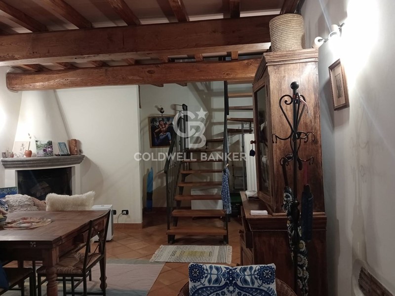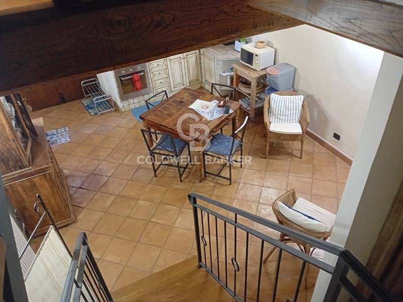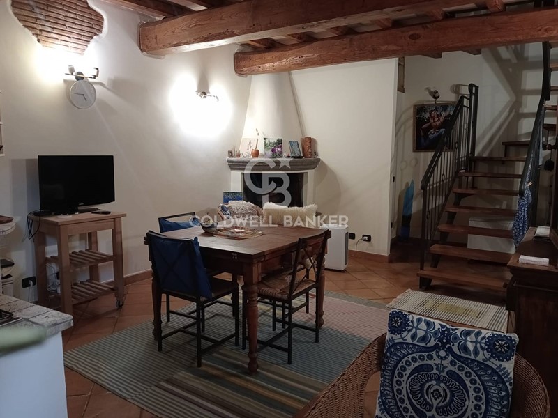La cucina/soggiorno con camino completamente attrezzata con elettrodomestici moderni, dispone di unampia zona pranzo ideale per momenti conviviali. La zona notte del piano superiore raggiungibile da scala in legno comprende una camera matrimoniale accogliente e curata nei dettagli, mentre un caratteristico soppalco ospita un comodo divano letto, perfetto per ospiti o momenti di relax.