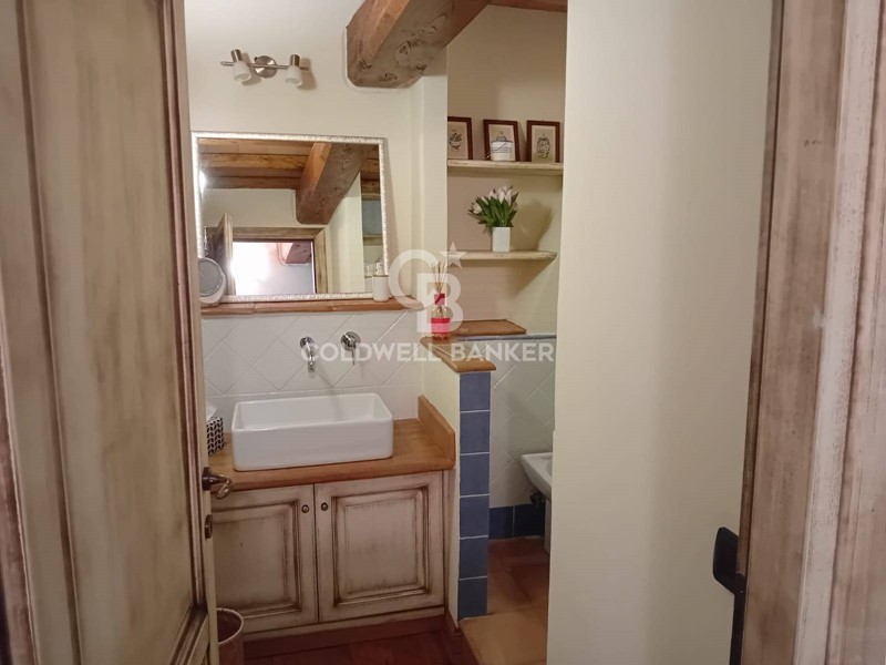 Sono presenti due bagni con doccia, entrambi rifiniti con materiali di pregio. Gli interni uniscono armoniosamente stile antico e moderno, creando unatmosfera calda e raffinata.