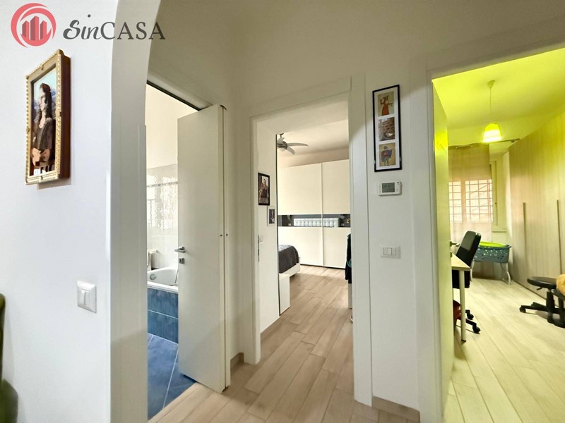 Lappartamento è composto da un accogliente ingresso che conduce al soggiorno con angolo cottura, un ambiente funzionale e ben distribuito, perfetto per vivere la zona giorno in totale comfort. La zona notte comprende una spaziosa camera matrimoniale, una cameretta versatile adatta come stanza per bambini, studio o camera per gli ospiti, e un bagno finestrato con vasca.