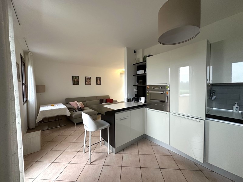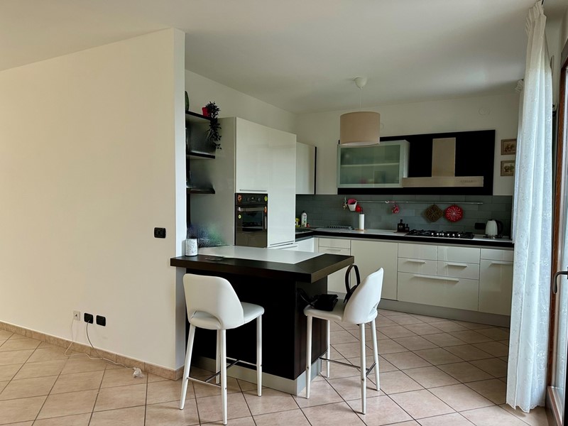 L'ingresso conduce a un ampio open space con zona salotto e cucina, che grazie ad un pratico terrazzo rende l'ambiente luminoso e funzionale.
