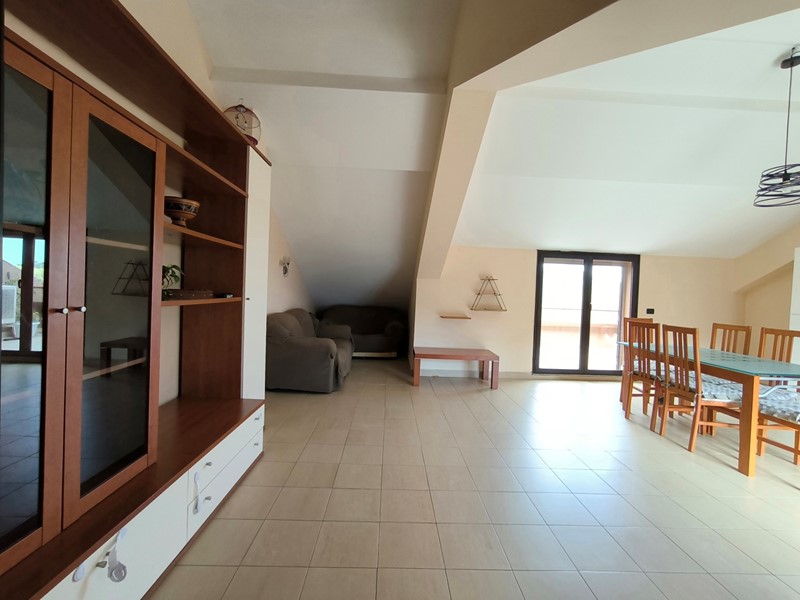 Al complesso residenziale Il Mito, mansarda con ingresso su soggiorno con angolo cottura, 2 camere da letto, bagno con doccia, 2 terrazzi a livello e posto auto in garage. La soluzione immobiliare è arredata per come si vede in foto.