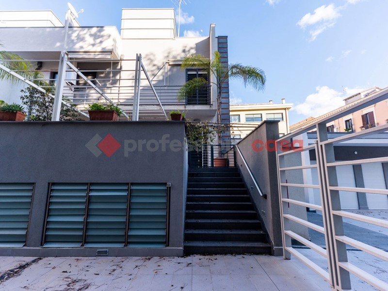 Viale XX Settembre - Via Carbone: in una delle zone più prestigiose di Catania, a ridosso del Viale XX Settembre, proponiamo in vendita una soluzione abitativa di ben 195 mq catastali inserita in un elegante condominio composto da 4 unità abitative e due botteghe. L'immobile ha ingresso indipendente poichè la composizione delle abitazioni è simile alle ville accorpate, per cui confinanti solo lateralmente, ed ha una posizione angolare che garantisce a tutti gli ambienti un'ottima esposizione e tanta luminosità. Il piano terra si apre su un ampio vano che accoglie gli ospiti, seguito dalla spaziosa zona living con cucina a vista che espone su una terrazza a livello di 45 mq circa, oltre ad un elegante servizio completo. Tramite scala interna e/o ascensore privato si accede agli altri piani, ovvero: piano primo ove si trovano le tre camere da letto con ulteriore bagno ed un comodo balcone; piano secondo ed ultimo caratterizzato dalla presenza di un vano tecnico ed una terrazza esclusiva di 48 mq circa; piano interrato composto da un unico grande vano e ammezzati dedicati a ripostiglio e lavanderia. Questa proprietà si distingue per le sue finiture moderne e minimaliste, per la vasta disponibilità di ambienti interni che possono essere rivisitati ed adattati alle proprie esigenze, nonchè per la presenza di ben 2 terrazze esclusive dove poter godere di momenti di relax e convivialità. Completa la proposta un garage di 19 mq ubicato all'interno del condominio.