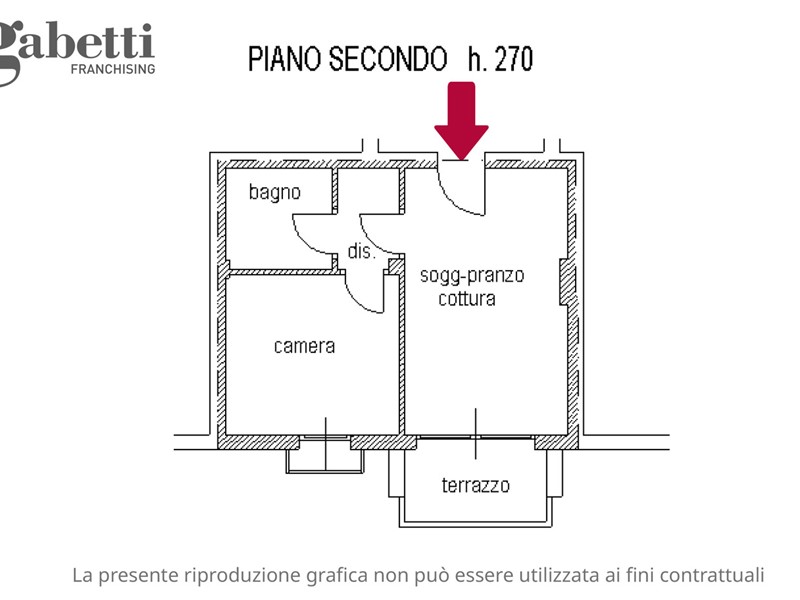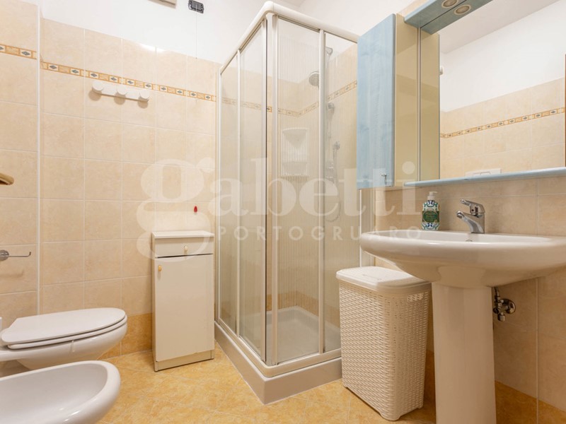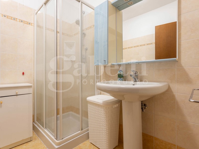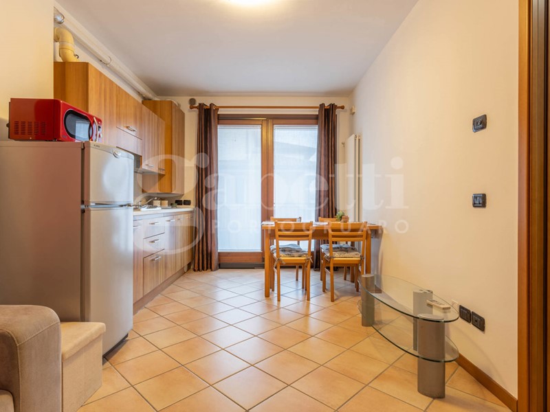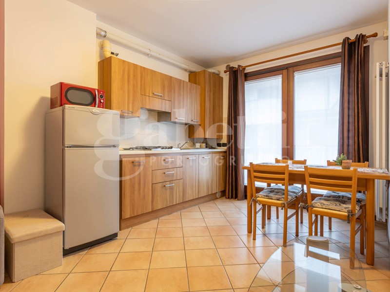 L'appartamento, in classe energetica C, è posto al secondo piano ed è servito da ascensore. L'ingresso si apre direttamente sulla zona giorno, composta da soggiorno con angolo cottura in ambiente unico, contenuto ma ben illuminato. Un disimpegno suddivide la camera matrimoniale con pavimenti in parquet e poggiolo dal bagno con box doccia, lasciando un piccolo ma funzionale spazio destinato alla lavatrice.