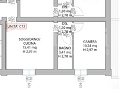 APP BILOCALE C9: Situato al piano secondo ingresso su soggiorno con angolo cottura, camere matrimoniale e bagno.