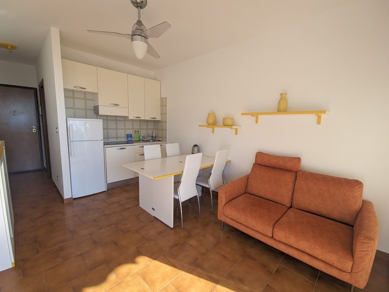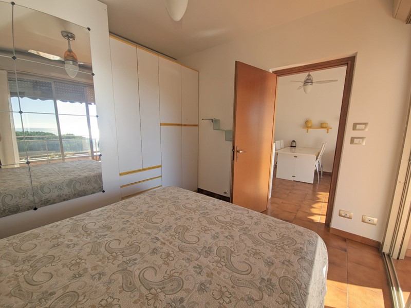 L'appartamento si trova in un condominio immerso nel verde e si compone di 48 mq abitabili così distribuiti: soggiorno con angolo cottura, una camera da letto principale e una cameretta utilizzabile anche come studio, e un bagno con doccia. Completano la proprietà una cantina e un box auto, entrambi inclusi nel canone. Fiore all'occhiello dell'abitazione è il terrazzo di 15 mq con vista mare mozzafiato, perfetto per godersi il sole e le serate estive. Il riscaldamento è autonomo.