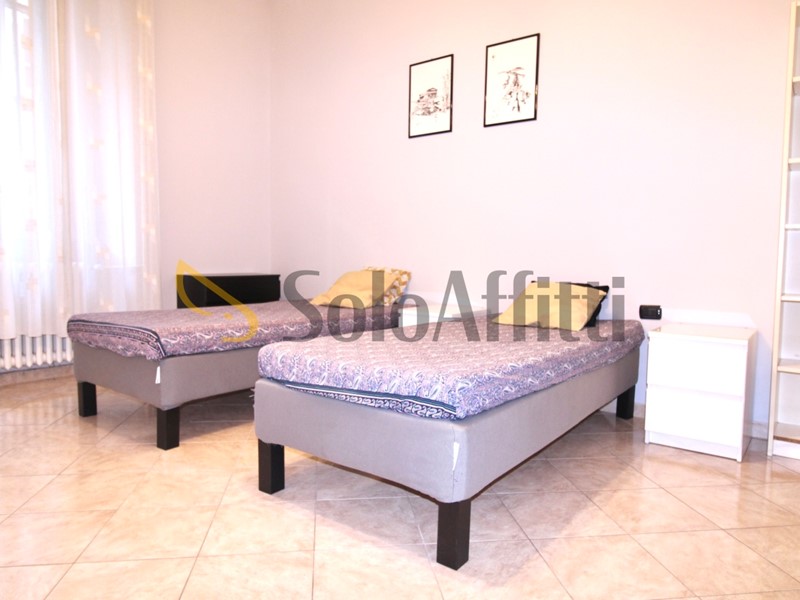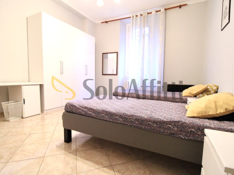 Ingresso/disimpegno, bagno finestrato con doccia, soggiorno arredato con tavolo e divano-letto, cucinotto separato, due camere da letto (una con letto a una piazza e mezza e una seconda con due letti singoli e scrivanie). Presente un balconcino.