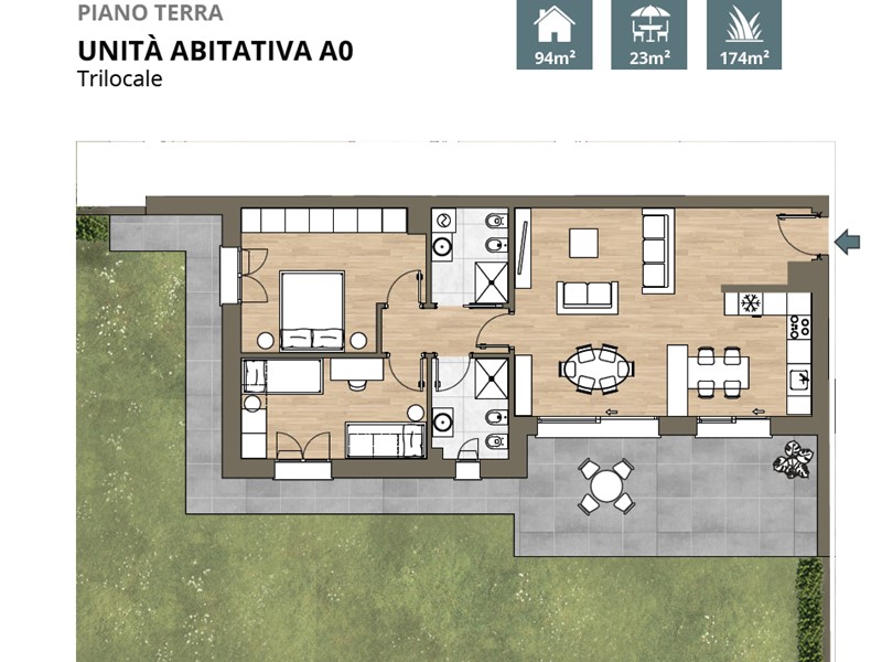 Trilocale di nuova costruzione P.T. con giardino privato di 174 MQ – finiture personalizzabili