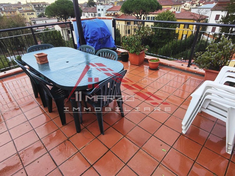 Una scala interna conduce a una soffitta utile e a una terrazza di 24 mq, vero capolavoro della proprietà, che offre una vista libera sui tetti di Pisa, in uno sguardo che spazia dal mare alle montagne.