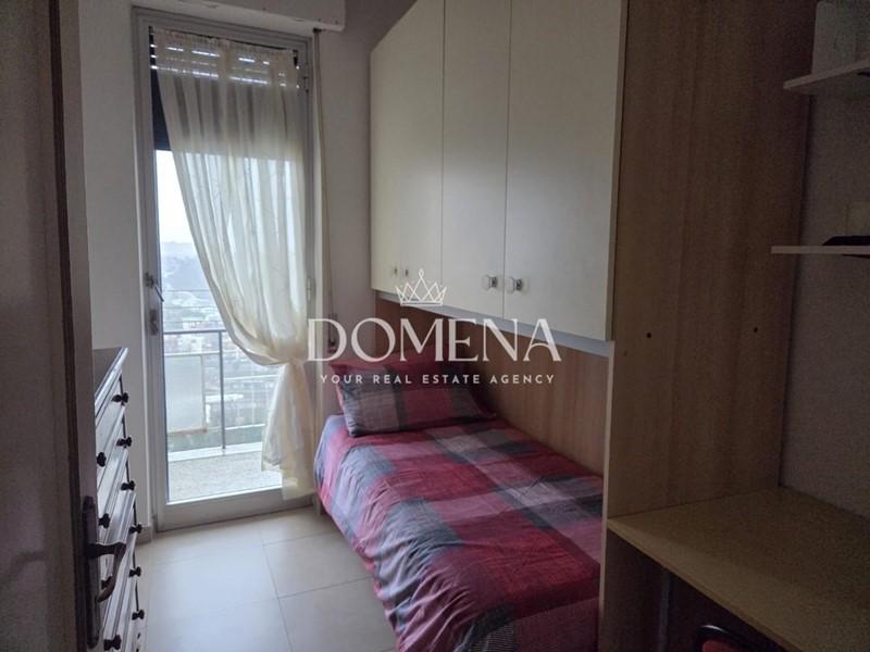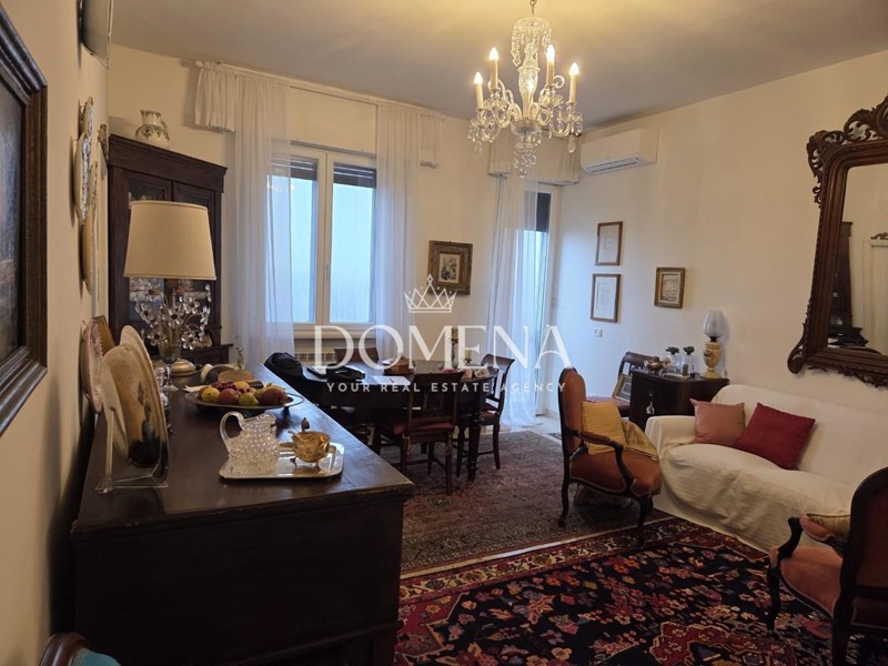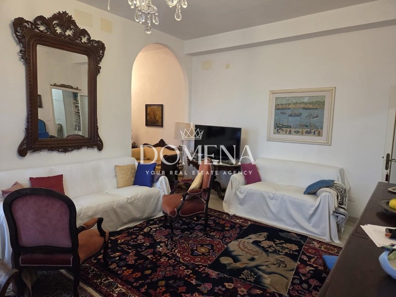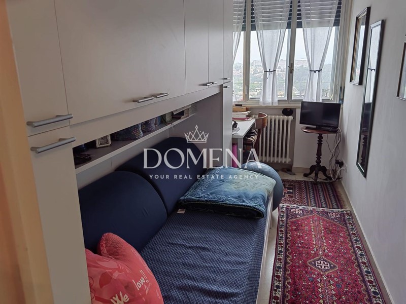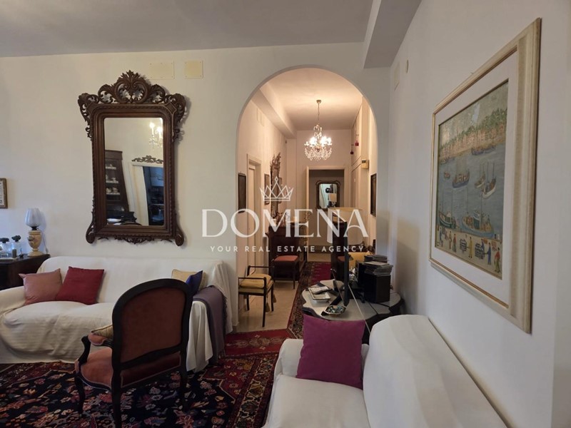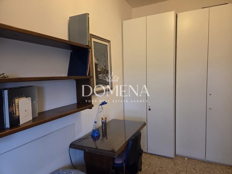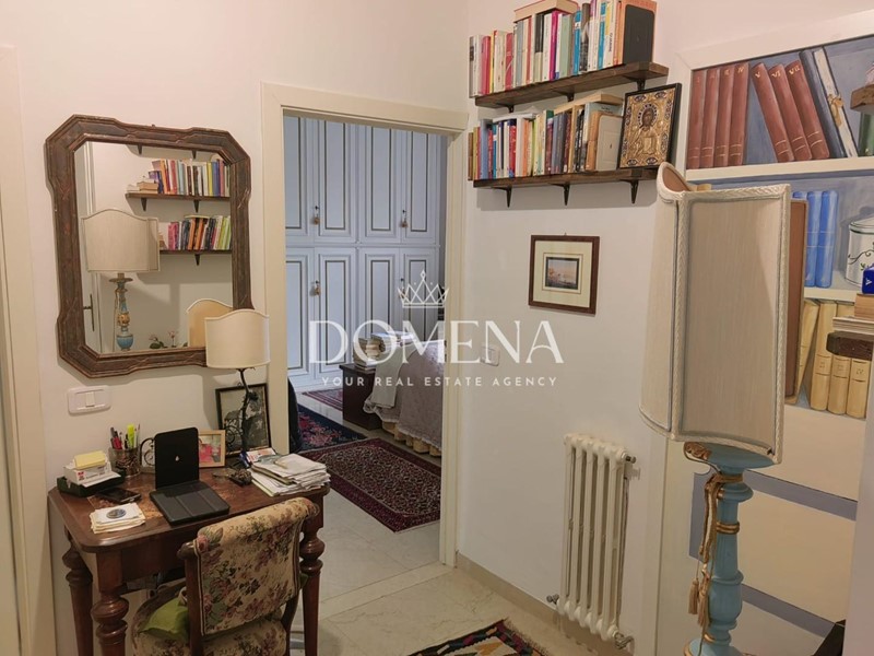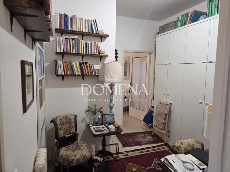 L'immobile di 120 mq è composto da ingresso, ampio salone con balcone, cucina abitabile, studio, 2 camere singole, cucinotto e bagno, disimpegno, ripostiglio, camera matrimoniale e altro bagno.