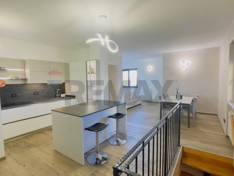 La zona giorno di oltre 30 mq è il vero cuore della casa: uno spazio ampio e conviviale dove rilassarsi sul divano allungabile, cucinare e condividere momenti speciali grazie alla cucina con isola colazione e piano a induzione. Tutti gli elettrodomestici sono in classe energetica A e lambiente è dotato di climatizzatori, per un comfort totale in ogni stagione. Da qui, un comodo collegamento interno conduce direttamente al garage singolo, una comodità che fa la differenza nella vita quotidiana.