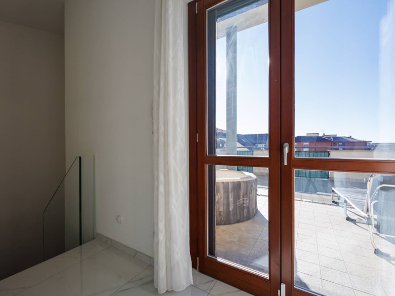 In stabile moderno del 2021 proponiamo in vendita un elegante attico disposto su due livelli, al quinto e sesto piano, caratterizzato da ambienti luminosi, spazi esterni generosi e una splendida vista aperta sullintero arco alpino.