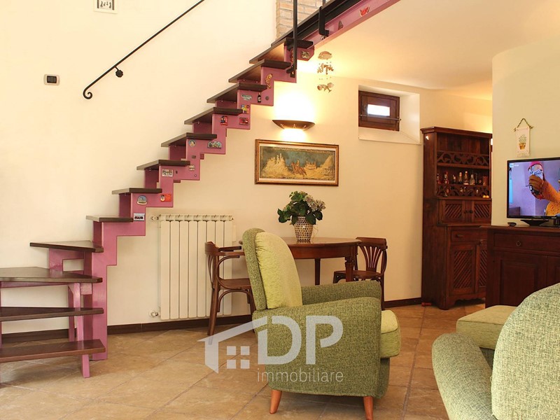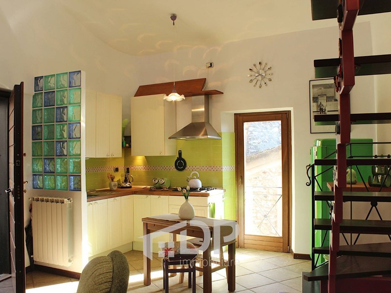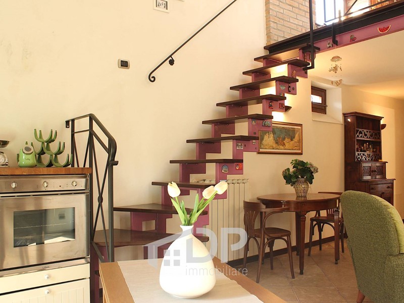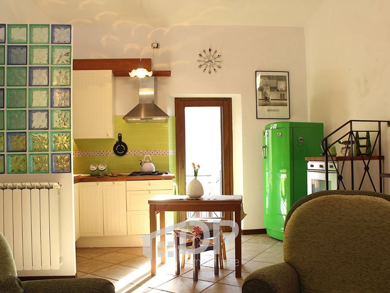 Lingresso principale e indipendente, con portoncino blindato, si trova alla fine di una scala che sale al primo piano: qui si entra nel salone, ben distribuito e luminoso, con porta finestra e langolo cottura completo di arredi ed elettrodomestici; sullo stesso livello si trovano la camera da letto e il bagno con doccia.