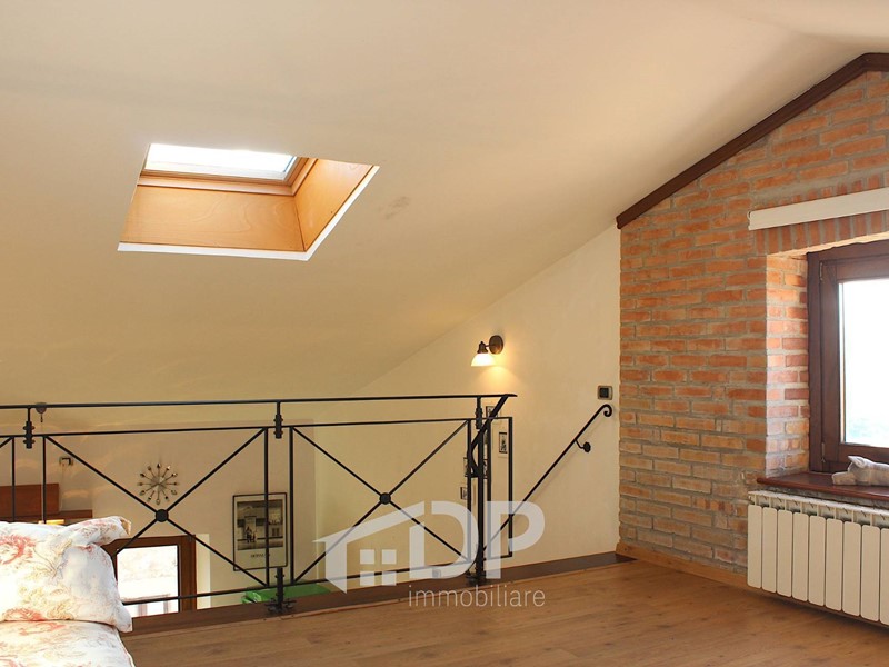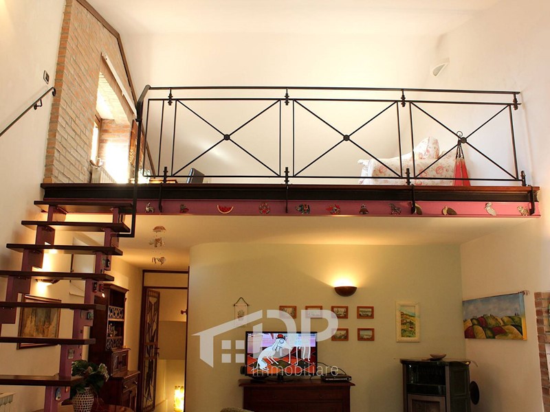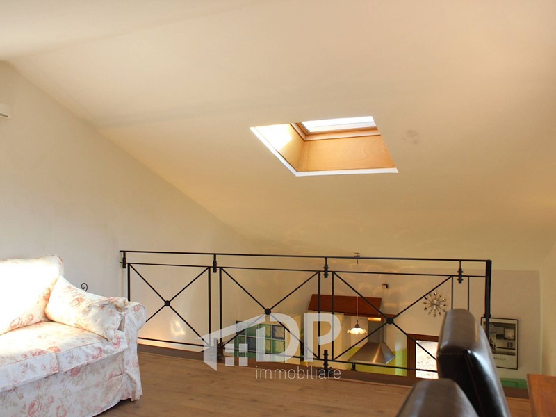 Dal salone, una scala in ferro laccato e legno conduce alla zona soppalco, a vista e ampio, con un'altezza adeguata per essere vissuto come una seconda camera o spazio aggiuntivo, con una finestra che incornicia la vista sui tetti e sulla pianura sabina. Nella parte spiovente del tetto è stato realizzato un locale soffitta.