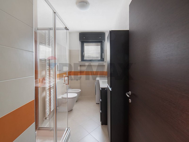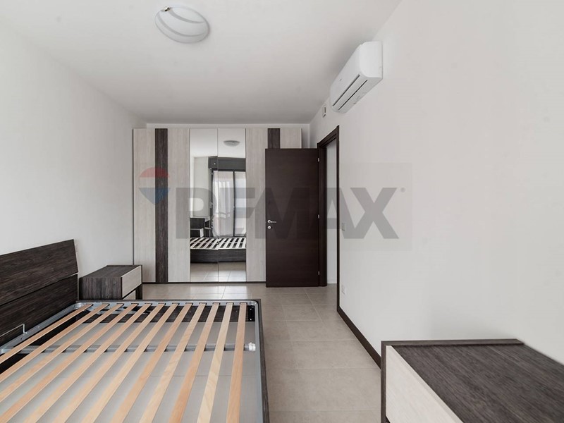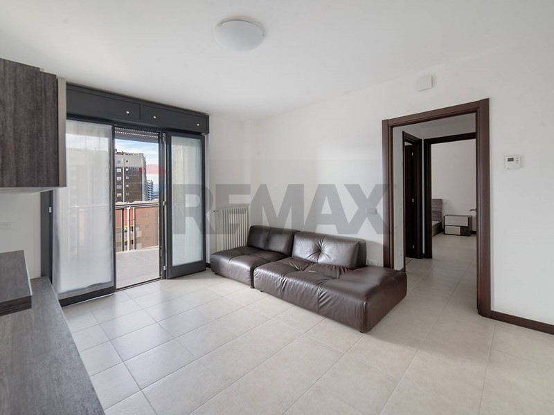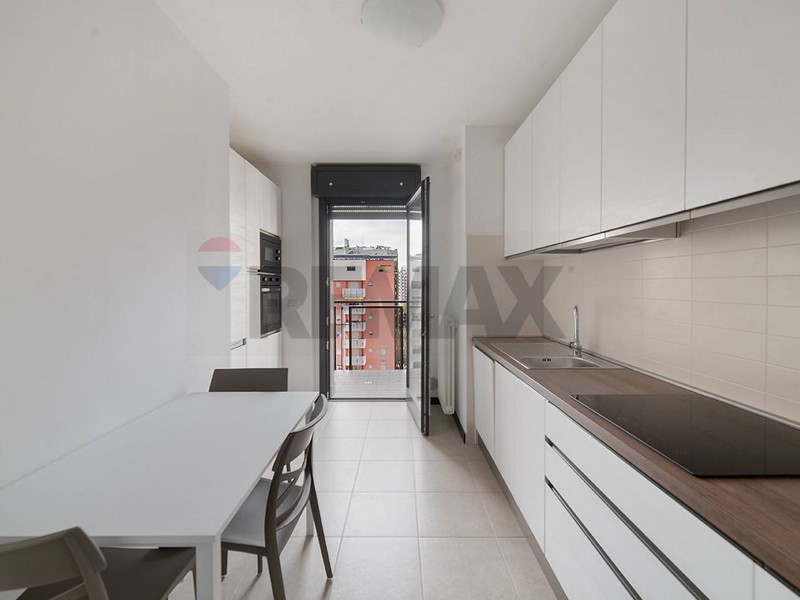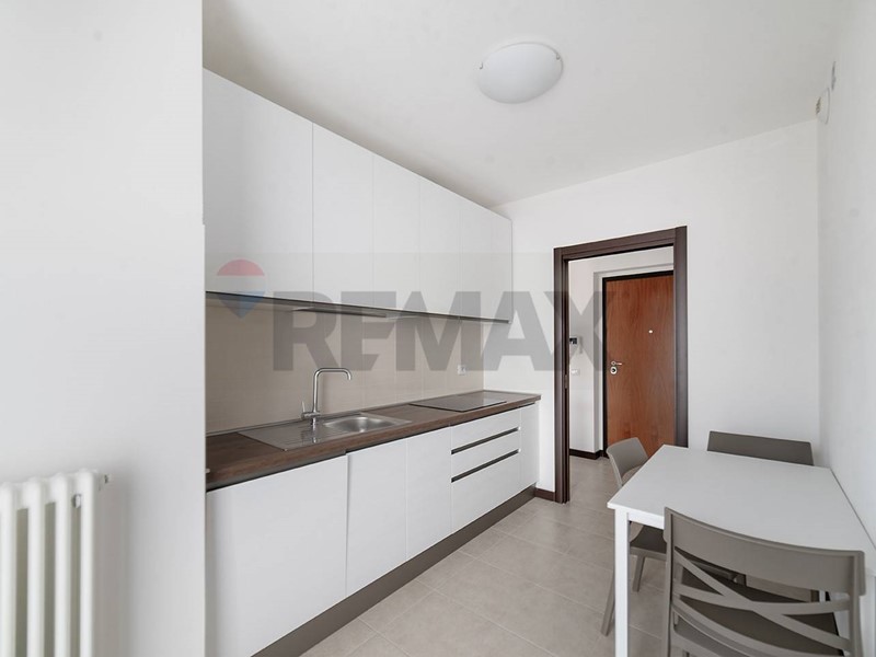 L'immobile è composto da: cucina abitabile con accesso su terrazzo, soggiorno luminoso anch'esso con accesso sull'ampio terrazzo con affaccio sul parco interno condominiale (esposizione ovest), camera matrimoniale e bagno finestrato.