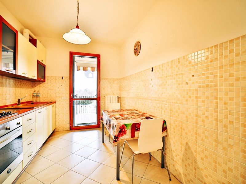 Lappartamento è composto da un ingresso ed ampio soggiorno luminoso e cucina abitabile entrambi con affaccio sul loggiato.