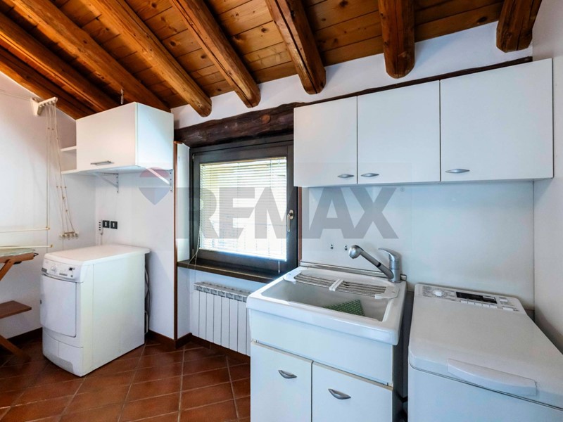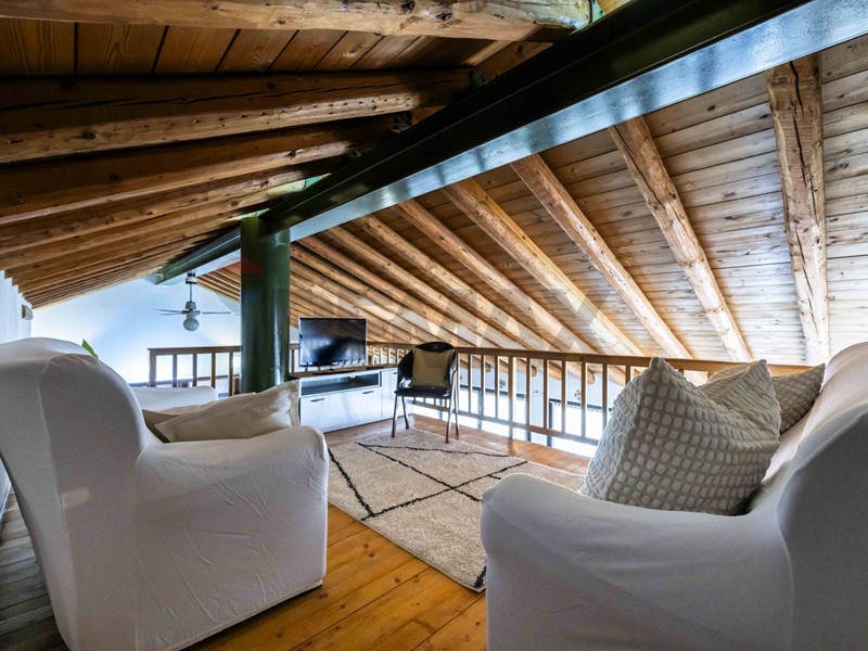 Sopra, un soppalco importante: una parte perfetta come zona TV o relax e unaltra, molto grande, ideale come spazio di stoccaggio o ambiente multifunzione. Conclude la lavanderia dedicata, vera comodità in un attico di questo genere.