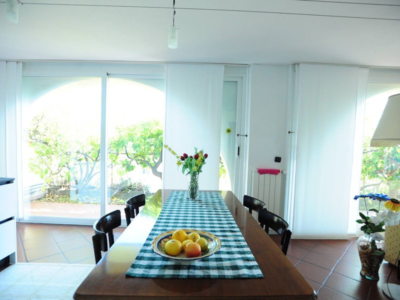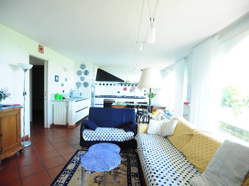 L'ingresso conduce a un ampio e accogliente soggiorno, arredato con gusto e dotato di grandi arcate con finestre panoramiche che regalano una piacevole esposizione al sole durante tutto il giorno.
