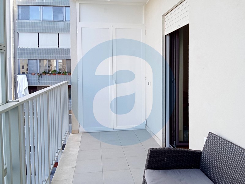 ESTERNO: Appartamento al quinto piano in un edificio di sette piani, dotato di ascensore. Balcone di 8 mq. Servizio di portineria.