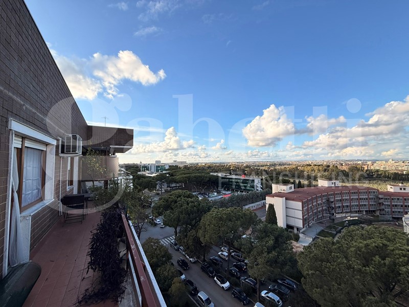 Via del Serafico - In complesso signorile con servizio di portineria nella prestigiosa zona del Serafico, fornita di ogni servizio, nelle vicinanze della stazione metro B Laurentina, proponiamo in vendita un appartamento luminoso sito all'ottavo ed ultimo piano con vista panoramica sullo skyline di Roma, composto da ampio salone, cucina abitabile, camera matrimoniale, camera-studio, bagno con finestra e balcone.