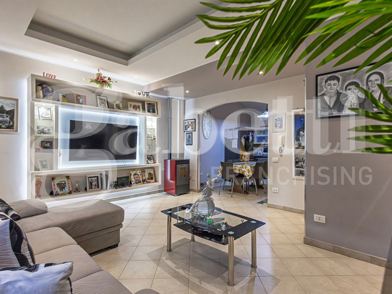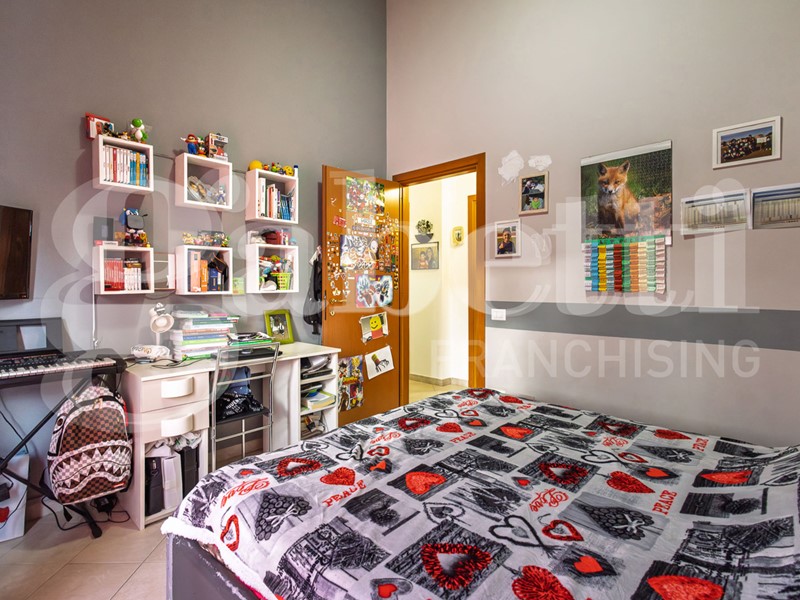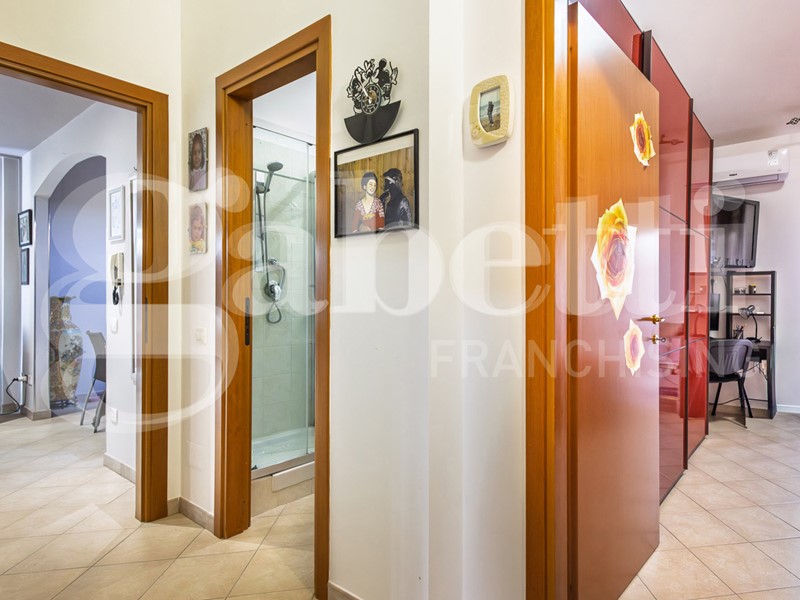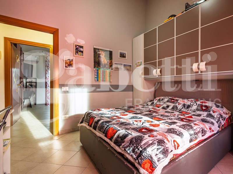 L'immobile è composto da soggiorno, cucina abitabile, disimpegno, bagno, camera matrimoniale, camera singola con balcone e ripostiglio.