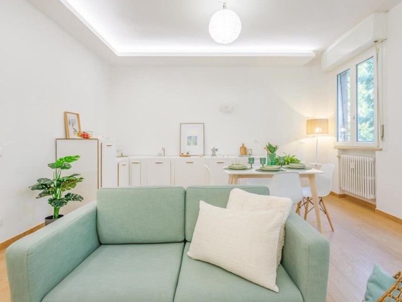 La zona giorno si apre su un luminoso openspace che include la cucina, ideale per chi ama gli spazi aperti e conviviali. Le due camere da letto garantiscono comfort e privacy, mentre i due bagni, anch'essi rinnovati, offrono praticità e stile.