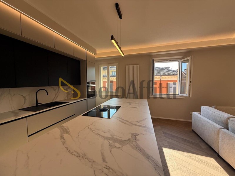 MODENA (centro storico) In palazzo referenziato proponiamo al 3° piano con ascensore ampio appartamento ristrutturato, nuovo e mai abitato. L'immobile è così composto: ingresso in salone con cucina a vista, separazione zona pranzo, 2 camere grandi, studio, 2 bagni. L'immobile è modernamente arredato di tutto , parquet nelle stanze, porta blindata, video citofono, aria condizionata , termo-arredi e termoautonomo! Disponibile da subito. Prezzo: 1.800€