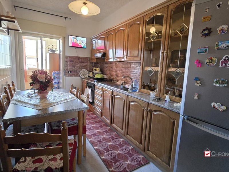 3vs443. Via Ernesto Cianciolo n. 45. Bordonaro.\nAgenzia immobiliare Chronocasa, filiale Messina Sud, propone in vendita luminoso appartamento in complesso residenziale and quot;Alba Chiara and quot;.\nL'immobile al secondo piano con ascensore ha una metratura di 90 mq ed è composto da: ingresso in corridoio, cucina abitabile con affaccio su un balcone, salone con balcone, due camere da letto, doppi servizi e ripostiglio.\nPosto auto condominiale assegnato.\n Prezzo ribassato ad euro 92.000\nPorte in legno. Infissi in alluminio vetrocamera. Pavimento in gress porcellanato. Pompe di calore inverter.\nImmobile in buone condizioni. Per informazioni e/o appuntamenti contattare lo 0902405392 o il 3917923235 anche messaggistica whatsapp o scrivere alla mail info.provinciale@chronocasa.it\n - Maggiori Dettagli: Cucina Abitabile, Climatizzato, Porta blindata