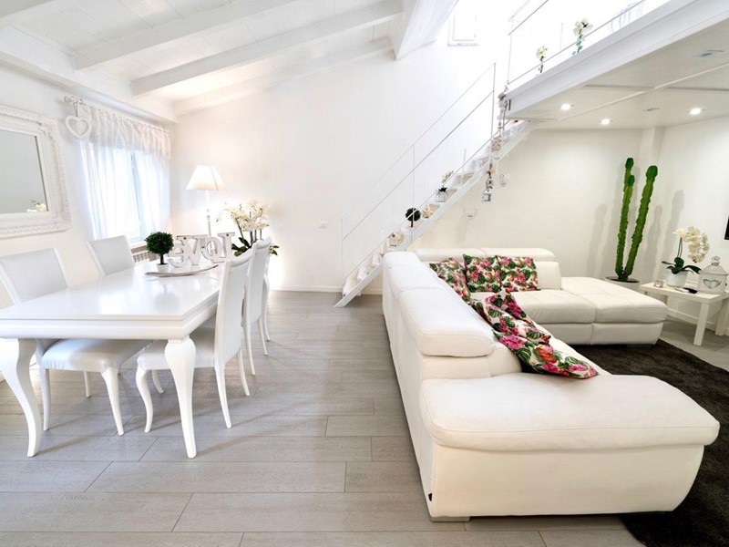 L'immobile si compone di ingresso su ampio e luminoso soggiorno con soppalco che rende particolare la zona giorno, zona cottura in posizione riservata con moderna cucina su misura; zona notte con due camere matrimoniali di cui una con cabina armadio, due bagni e ripostiglio con lavanderia.