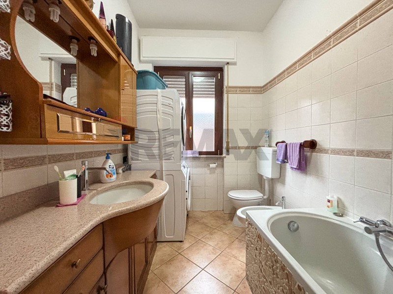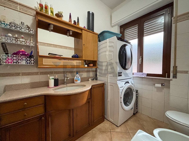 Anche il bagno dotato di vasca e colonna lavanderia è molto pratico e funzionale.