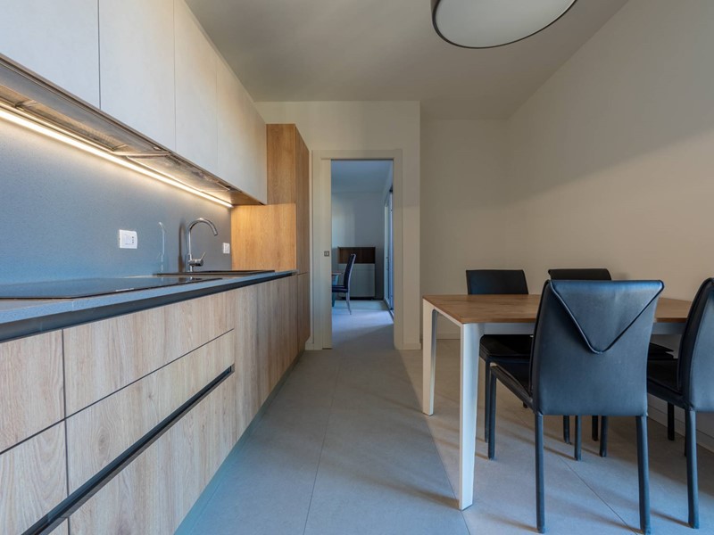 L' ampia superficie ben distribuita razionalmente garantisce ampi spazi e una perfetta distribuzione degli ambienti. L'ampio trilocale panoramico si compone di un luminoso e accogliente soggiorno con accesso diretto al terrazzino, ideale per momenti di relax e convivialità, una cucina abitabile con balcone completamente arredata e dotata di elettrodomestici di ultima generazione. La zona notte è composta da due camere da letto matrimoniali, di cui una con affaccio su un balcone panoramico, due bagni entrambi con finestra finemente rifiniti. Un comodo ripostiglio ad utilizzo lavanderia e un vano cantina completano la funzionalità dell'appartamento.