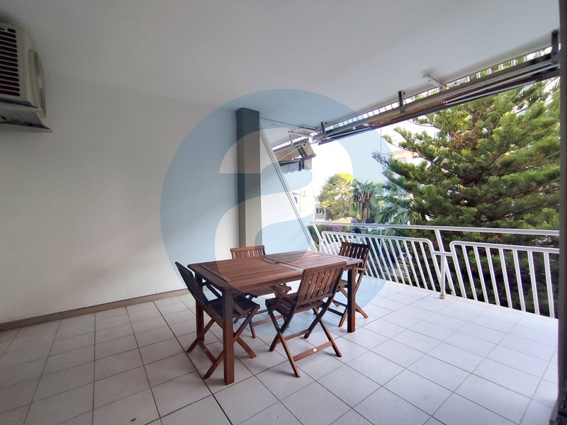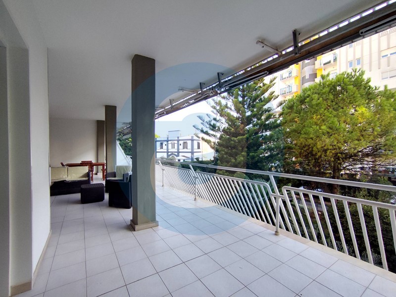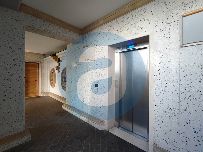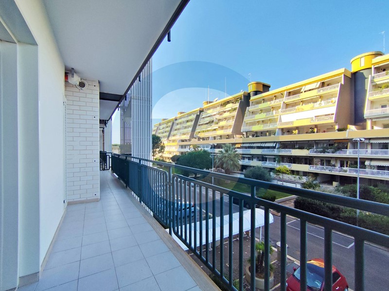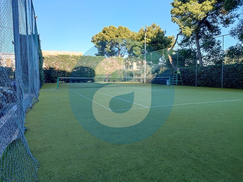 ESTERNO: Appartamento al secondo piano in uno stabile di sette piani, dotato di ascensore. Balcone terrazzato di 55 mq con esposizione a sud e dotato di tende da sole. Balcone di 18 mq, dotato di lavabo. Posto auto coperto a piano interrato. Campo da tennis a uso condominiale. Servizio di portineria.
