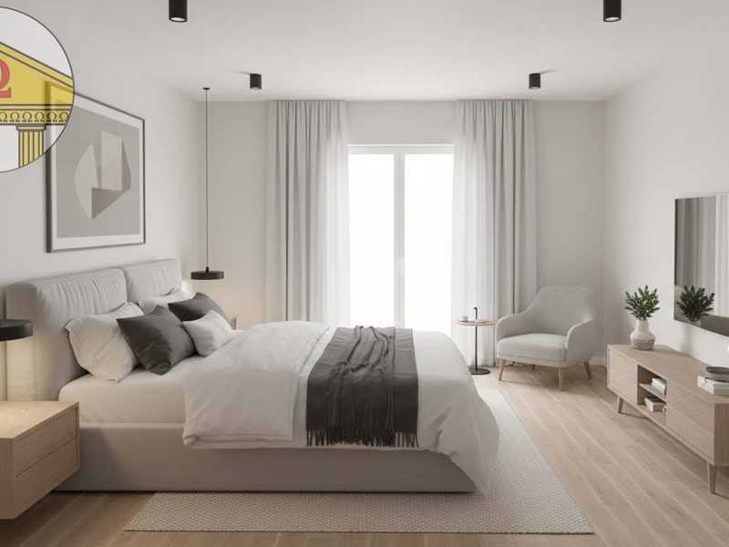Finiture di pregio: Pavimenti in legno, serramenti in PVC vetrocamera triplo vetro, avvolgibili in alluminio e tende tecniche motorizzati.