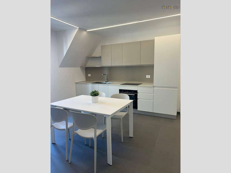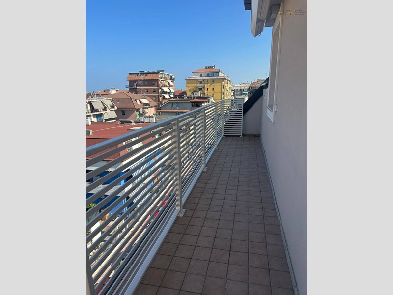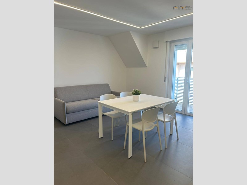 Attico nuovo in classe energetica A4 (NZEB edificio energia quasi a zero) completamente arredato con mobilia di qualità nuova, facente parte di un condominio totalmente ristrutturato esternamente, posto al quarto ed ultimo piano attualmente senza ascensore, (lavori ascensore previsti Aprile 2026) composto da ingresso su soggiorno angolo cottura con affaccio su terrazza, disimpegno, camera da letto matrimoniale e bagno finestrato con doccia e finestrato. L'appartamento sito in zona centrale e servita, non distante dal mare, si presenta in ottime condizioni generali, con portone d'ingresso blindato, infissi nuovi tripla camera PVC, videocitofono, tende da sole automatizzate elettriche, impianto elettrico a norma, sistema VMC, aria condizionata e completamente arredato.