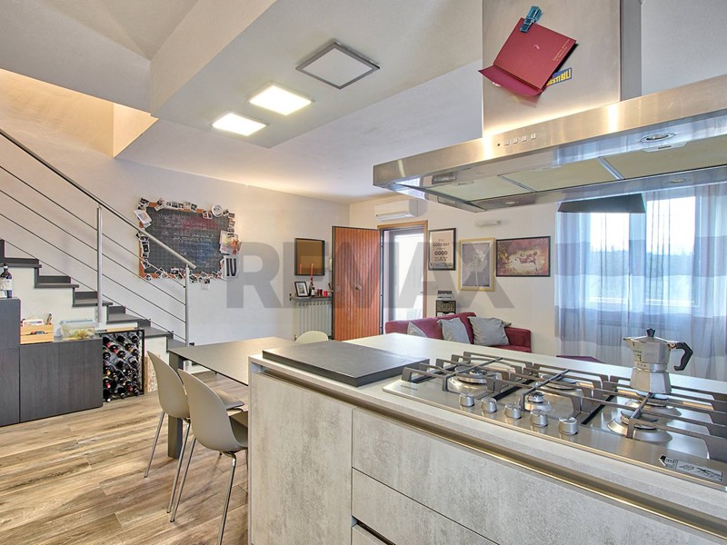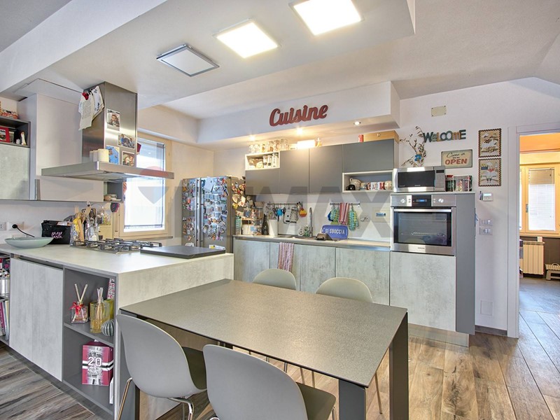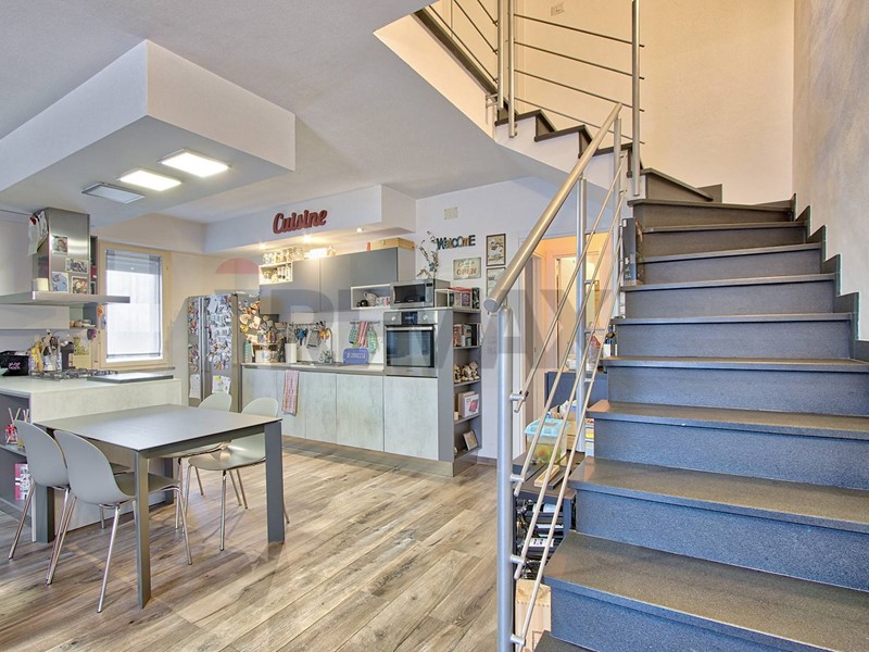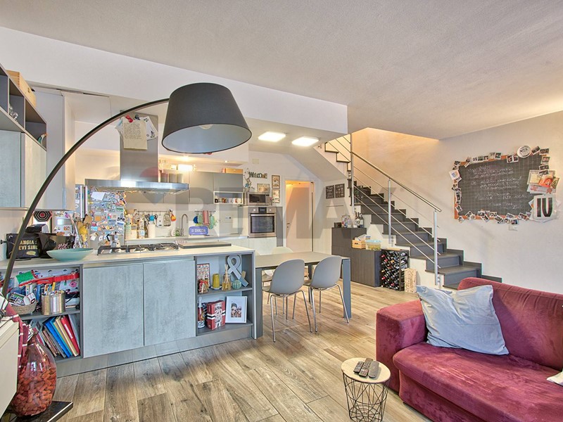 L'ingresso si apre su un ampio e luminoso soggiorno con cucina a vista parzialmente arredata, ideale per trascorrere piacevoli momenti in famiglia o con gli amici.