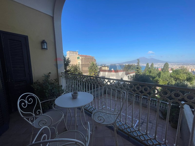 L'appartamento che gode di una vista suggestiva sulla Penisola Sorrentina e sul Golfo di Napoli, con una superficie di 207mq totali, si presenta in buono stato, ed è composto da: ingresso in ampio salone luminoso con doppi balconcini caratteristici e finestra, segue un'ampia zona giorno con camino, cucina in muratura, 2 ampi balconi terrazzati con un'incantevole vista mare e una finestra; attraversando un piccolo disimpegno entriamo nella zona notte ben divisa e confortevole con una camera da letto con doppie finestre, una comoda cabina-armadio, una camera con finestra, doppi servizi.