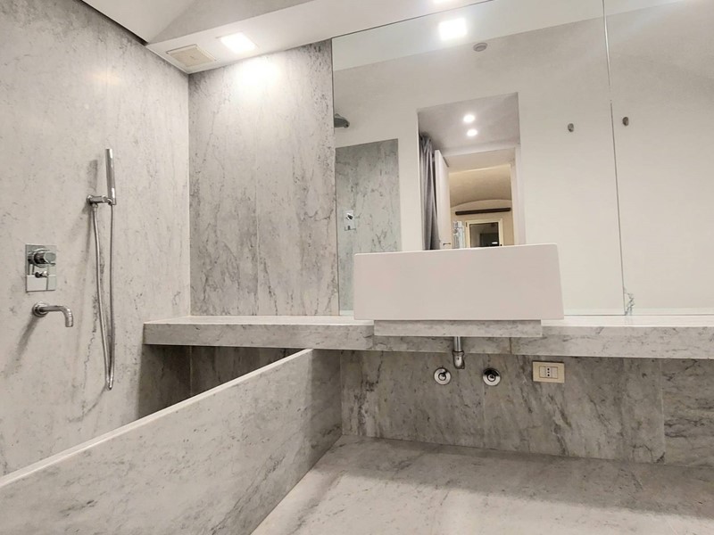 Nella stessa zona living troviamo un bellissimo bagno