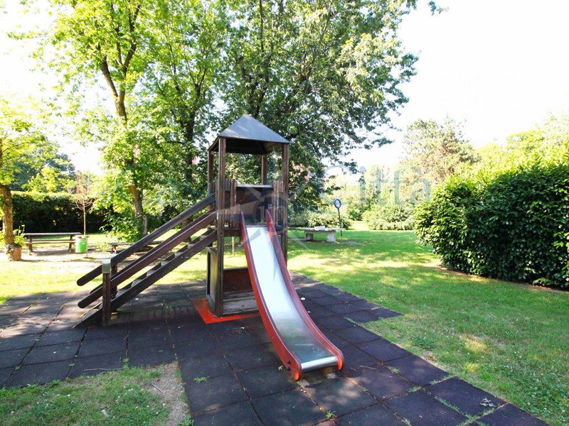 Il complesso residenziale, noto per il suo valore architettonico e culturale, dispone di numerosi servizi: ampie aree verdi, area giochi per bambini, nido privato, biblioteca condominiale e doppia portineria. A completare la proprietà è presente una cantina; sono inoltre disponibili box e posti auto acquistabili separatamente.