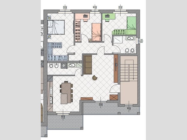 SAN NICOLO' - In palazzina di nuova costruzione CLASSE A, disponibile ultimo QUADRILOCALE composto da soggiorno con angolo cottura, disimpegno, tre camere, due balconi coperti, e due bagni.