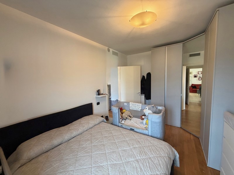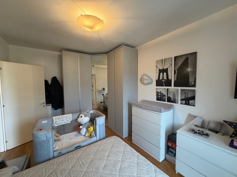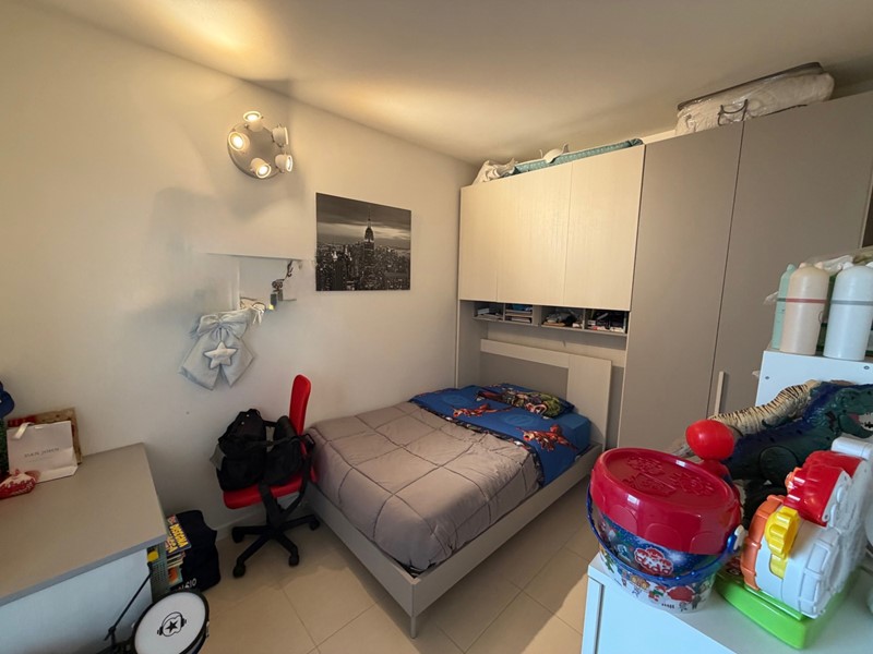 L'interno, in condizioni impeccabili e praticamente nuovo, vanta una camera da letto e una cameretta, un luminoso soggiorno con angolo cottura e un bagno moderno. L'impianto di climatizzazione centralizzato assicura il massimo comfort in ogni stagione.