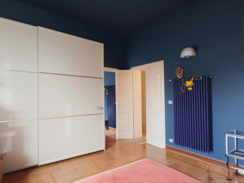 L'appartamento presenta finiture dell'epoca di costruzione pavimenti in parquet tranne che nei bagni e in cucina, infissi in legno, finestre caratteristiche dei primi del 900 con vetro singolo. Soffitti alti 4 metri.
