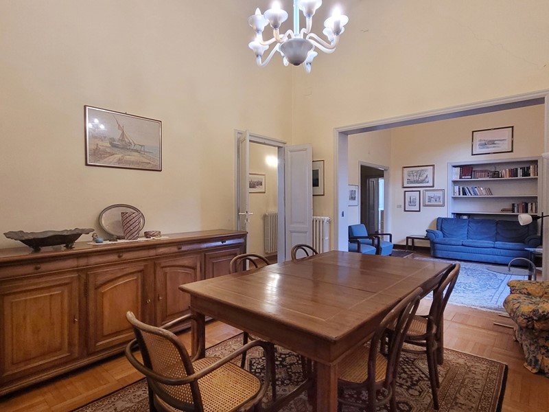 Situato al piano primo di una villa storica immersa nel verde di un parco che le conferisce riservatezza e unicità, l'appartamento di ampia metratura, 234mq è organizzato in un salone doppio, con affaccio su balcone lato sud, una grande cucina abitabile con caminetto e ripostiglio.