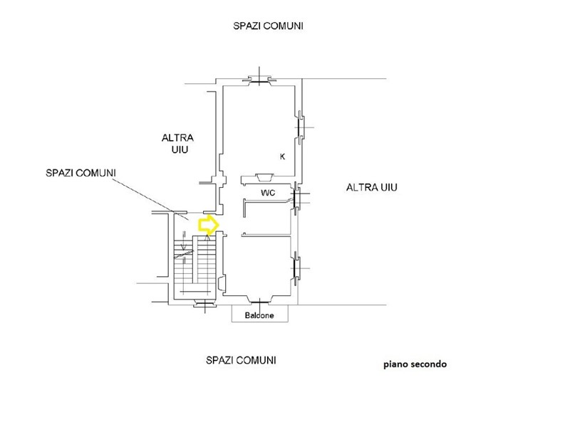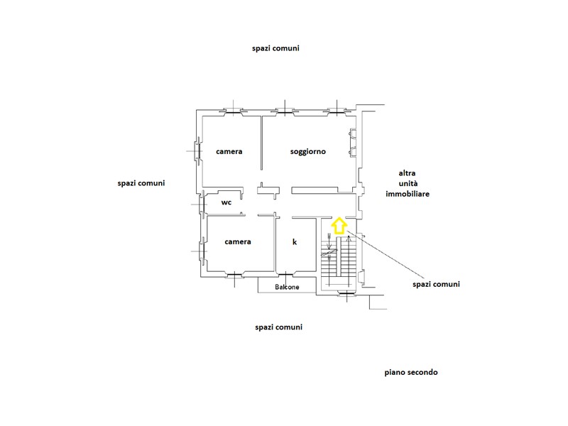 L'assenza di ascensore è compensata da una scala interna comoda e da una distribuzione su un unico livello, che valorizza la privacy e l'indipendenza della proprietà.
