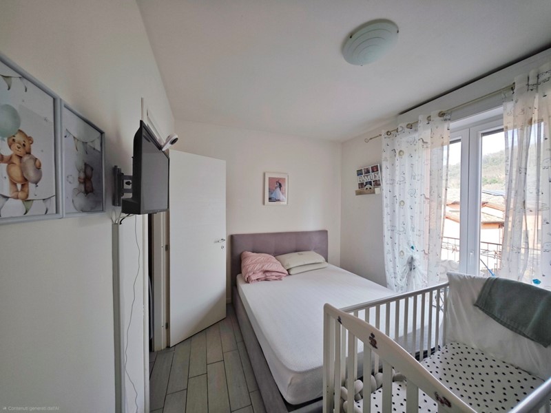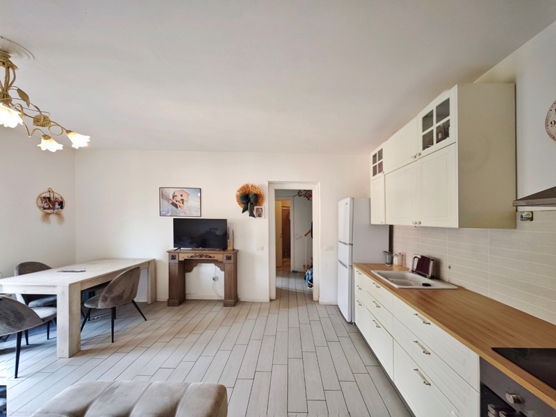 In zona residenziale tranquilla, immersa nel verde e defilata dal traffico proponiamo appartamento al primo piano cosi composto: entrata nel soggiorno con cucina a vista e accesso al terrazzo, disimpegno zona notte dove troviamo una camera matrimoniale con accesso al terrazzo e un bagno finestrato con doccia. Una scala a chiocciola ci porta al piano mansardato impreziosito da travi a vista dove troviamo due stanze. Completa la proprietà un posto auto scoperto. Il riscaldamento è centralizzato ma l' immobile è dotato di termostati in tutte le stanze.