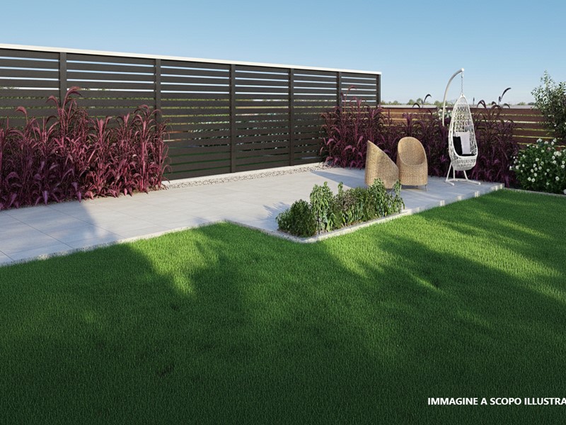 L'ampia zona living open-space si fonde con un portico abitabile di 21 mq e un magnifico giardino privato, creando un ambiente ideale per il relax all'aperto.